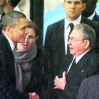 LA HABANA, CUBA (20/DIC/2013).- Desde el pasado 10 de diciembre, el saludo entre el presidente de Cuba, Raúl Castro y el mandatario estadounidense Barack Obama, durante el funeral de Estado en honor al ex presidente sudafricano