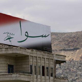 En la atareada calle Thawra, en el centro de la ciudad, dos nuevas vallas de Assad recibían a las muchedumbres. Una muestra al presidente, con traje gris y camisa azul, con la palabra "Juntos". La segunda valla simplemente decía "Juntos" y muestra la firma de Assad.