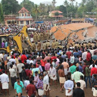 La mayoría de las 102 víctimas mortales murieron al derrumbarse el edificio donde se almacenaban los fuegos artificiales, explicó Chandy a la prensa en el recinto del templo.