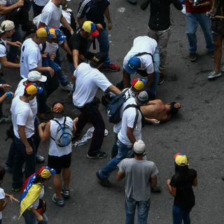 La mujer fue herida el miércoles, al paso de una marcha oficialista en el centro de Caracas, paralela a una manifestación opositora en protesta contra Maduro, quien cumplió ese día cuatro de sus seis años de mandato.