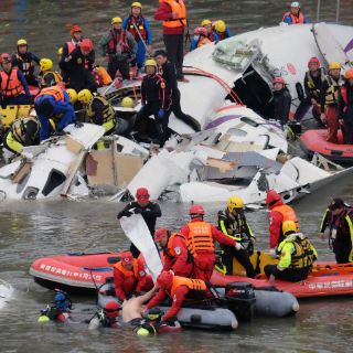 TAIPEI, TAIWÁN (04/FEB/2015).- Rescatistas taiwaneses usaron una grúa para sacar un avión de la aerolínea TransAsia de un río poco profundo el miércoles por la noche luego del accidente que causó la muerte de 23 personas y que deja 20 desaparecidos.