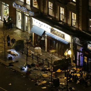 Imágenes de video tomadas desde helicópteros mostraban manchas de sangre en el pavimento de la popular zona turística y comercial conocida como Back Bay.