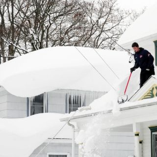 Mientras ciudades y pueblos se preparaban para inundaciones potenciales, dueños de viviendas y empleados de negocios en la región se trepaban a los techos para palear la nieve y reducir el peligro de desplome.