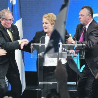 Marois fue sacada rápidamente del escenario por sus guardaespaldas cuando pronunciaba su discurso y resultó ilesa.
