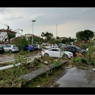 Venecia, Italia cusando daños a los techos de decenas de viviendas, cerca de 20 personas heridas y dos muertos.