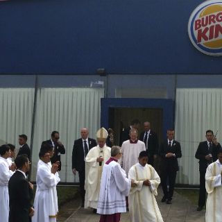 Previo a la única misa multitudinaria que ofició en Bolivia, el pontífice usó como sacristía para colocarse los ornamentos necesarios un local de Burger King localizado detrás del altar montado para la eucaristía.