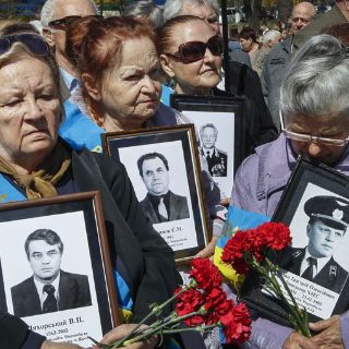 En Kiev, las familias de las víctimas y las autoridades del país participaron en una ceremonia frente a un memorial.