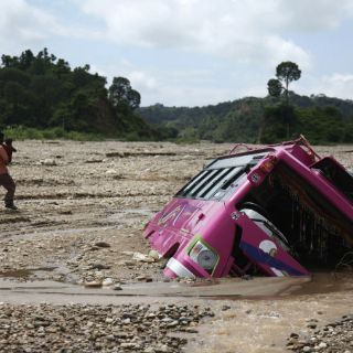 La mayor parte de los heridos pudieron ser rescatados porque el autobús cayó a una zona con poco nivel de agua, indicaron.