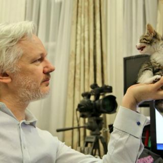 Julian Assange, ya no está tan solo en el cuarto de la embajada de Ecuador en Gran Bretaña al que llama hogar desde hace casi cuatro años. Ahora comparte su espacio con un gatito adorable.