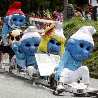 En la categoría de "mejores disfraces" destacaron los dueños del vehículo de los "Pitufos", y en la de "mejor carro decorado", el de la "Bandeja paisa", que tenía todos sus ingredientes, incluido un gran chorizo con un conductor dentro.