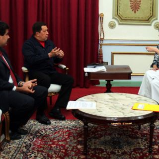 Chávez se reunió en el presidencial Palacio de Miraflores con empresarios y funcionarios colombianos, encabezados por su canciller María Angela Holguín, en la que se firmaron 13 acuerdos de cooperación bilateral.