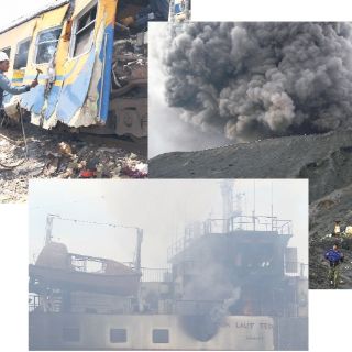 Un ferry en el que viajaban cientos de pasajeros se incendió cuando navegaba a unos tres kilómetros de distancia del puerto de Merak, al oeste de Java. La dirección de Servicios Marítimos señaló que al menos 11 personas habían muerto y que otras 427 sobrevivieron.