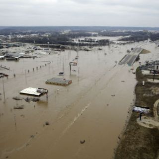 En otro pueblo de Missouri, Union, el agua del río Bourbeuse llegó a los techos de McDonald's, QuikTrip y otros comercios. El río alcanzó una altura récord el martes, de más de seis metros (20 pies) por encima del nivel de inundación.
