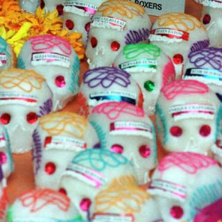 Flores naranjas, papel china, candelas, veladoras, panes de muerto, esqueletos y calaveras de azúcar adornaron la ofrenda, una manifestación de la religiosidad popular mexicana que se repite cada año en la vigilia de la festividad católica de los fieles difuntos.