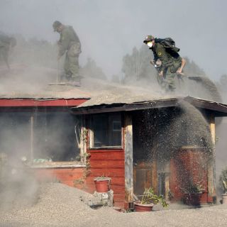 Parte del material expulsado por el volcán, el más grueso, cayó en las zonas aledañas al Calbuco, con acumulaciones de entre 30 y 100 centímetros, que derribaron techos de casas y comercios.