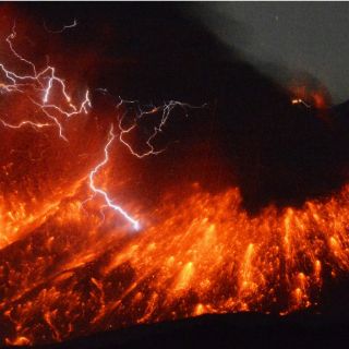 La televisión japonesa mostró una explosión anaranjada en un lado del volcán, cerca de la cumbre, junto con destellos similares a rayos. Humo gris oscuro subió como nube hacia el cielo.
