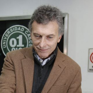 Macri depositó su voto en una universidad situada en el centro de la ciudad. Iba acompañado de su compañera de fórmula, Maria Eugenia Vidal.