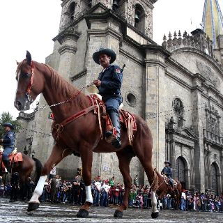 GUADALAJARA, JALISCO (16/SEP/2011).- A pesar de la intensa lluvia que se presentó desde el amanecer en el Centro de Guadalajara, miles de tapatíos se dan cita sobre la avenida 16 de Septiembre-Alcalde para disfrutar del tradicional desfile de corporaciones de seguridad con motivo del aniversario del inicio de la Guerra de Independencia.