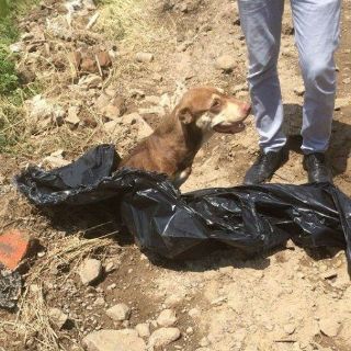 Abandonan en bolsa de basura a perra viva en Tlajomulco