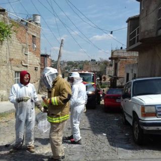 Alrededor de la una de la tarde se dirigieron unidades de la dependencia a atender el reporte de abejas agresivas en el cruce de las calles Saucito y Río Ameca, en la colonia Benito Juárez.