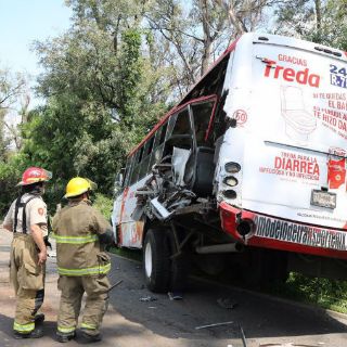 El incidente se registró en el acotamiento de la rúa cuando el chofer del transporte público se detuvo para levantar pasaje y fue impactado por la parte trasera por un camión de volteo, motivo por el cual la parte izquierda de la unidad se desprendió, produciéndose un boquete en el camión, así lo informó Protección Civil y Bomberos de Zapopan.