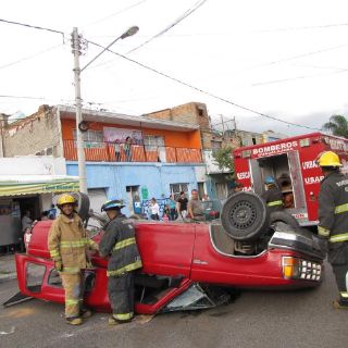 A las cinco y media una camioneta volcó en el cruce de las calles Manuel Payno y la 60, hecho donde resultaron con lesiones la mujer que conducía y una menor de edad de un año. Ambas fueron trasladadas a la Unidad de Servicios Médicos Municipales Ruiz Sánchez de Guadalajara.