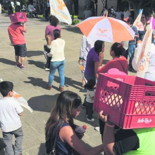GUADALAJARA, JALISCO (28/AGO/2016).- Simpatizantes del partido Movimiento Ciudadano (PMC) arribaron ayer al mitin político en la explanada del Instituto Cultural Cabañas en camiones urbanos y privados. Ante ello, los dirigentes naranjas fueron acusados de “acarreo”.