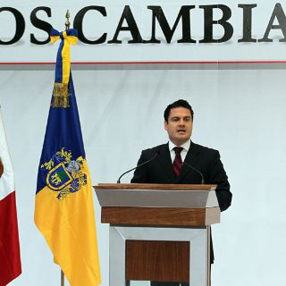 El mandatario estatal ofrece un discurso con motivo de su toma de protesta.