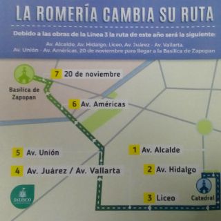El año pasado, el trayecto de los romeros se desvió por Avenida Vallarta y Américas, debido a la construcción de la Línea Tres del Tren sobre las avenidas Ávila Camacho y 16 de Septiembre, lo que generó se registra una afluencia de un millón y medio de asistentes a diferencia de los 2.5 millones de fieles que solían acudir.