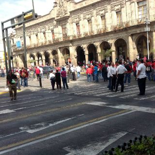 Desde las nueve de la mañana de este miércoles trabajadores del Ayuntamiento de Guadalajara se reunieron en el Parque Rojo y marcharon hasta Palacio Municipal para pedir un aumento salarial, por lo que fueron bloqueadas Federalismo, Hidalgo y posteriormente avenida Alcalde.