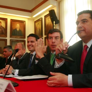 GUADALAJARA, JALISCO (18/MAR/2011).- Los alcaldes de Guadalajara, Tlaquepaque y Tlajomulco, Aristóteles Sandoval Díaz, Miguel Castro Reynoso y Enrique Alfaro Ramírez, respectivamente, firmaron un convenio de colaboración en el que se comprometen a brindar todas las facilidades para la construcción de la Línea 3 del Tren Eléctrico que impulsa el Gobierno del Estado.