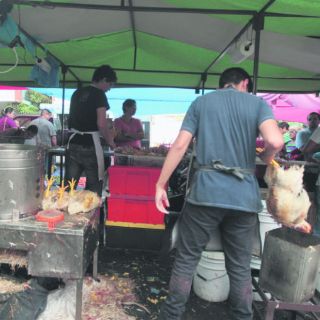 El tianguista aseguró que trabaja de esa forma desde hace más de tres décadas para asegurar a sus clientas que el pollo que consumen es el más fresco de la zona.