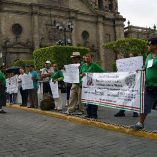 GUADALAJARA, JALISCO (18/JUN/2013).- Un grupo de aproximadamente 100 vendedores ambulantes que ocupaban la plazoleta frontal del Mercado Libertad -o San Juan de Dios-, en la Calzada Independencia, y que fueron retirados por el Ayuntamiento de Guadalajara debido a que es una actividad que ahí está prohibida, se manifestó hoy al mediodía ante el Palacio Municipal.