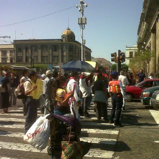 GUADALAJARA, JALISCO (12/NOV/2012).- El Frente de Resistencia de Comerciantes del Estado de Jalisco que lidera Salvador Cabrera Vera acaba de tomar la confluencia de 16 de Septiembre e Hidalgo, en el Centro Histórico de Guadalajara y frente al Palacio Municipal tapatío, para impedir el tráfico vehicular como protesta al operativo que se implementa para ordenar el espacio público y retirar el ambulantaje.