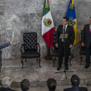 GUADALAJARA, JALISCO (13/JUN/2014).- El presidente del Supremo Tribunal de Justicia en la Entidad, Luis Carlos Vega Pámanes, celebra y apoya la decisión tomada por el gobernador Aristóteles Sandoval para colocar a Roberto López Lara al frente de la Secretaría General de Gobierno.