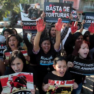 "¡No es diversión, es una tortura! ¡Derechos ya para los animales!" y "¡Tauromaquia, abolición! ¡Basta ya de sufrimiento animal!", fueron las frases que los integrantes de la organización no gubernamental 'Igualdad Animal' repitieron una y otra vez, conforme los aficionados se dirigían a la plaza de toros, pues estaba ya por comenzar la corrida.