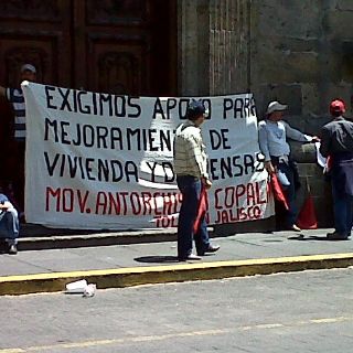 Con base en lo manifestado por Secretaría de Vialidad y Transporte (SVyT), se trata de un aproximado de 300 personas pertenecientes a la asociación civil Antorcha Campesina, quienes exigen oportunidades de trabajo, así como viviendas.