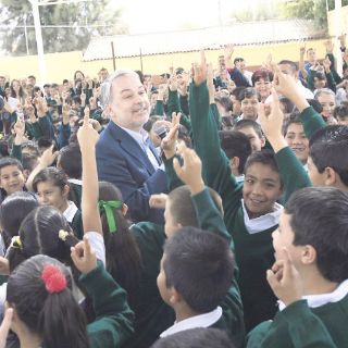 El gobernador motiva a niños de primaria y a habitantes de Tlajomulco a presionar al coordinador parlamentario del PRI