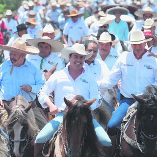 En la cabalgata también participaron varios candidatos a puestos de elección popular, como los abanderados a diputados locales del distrito 12, Fabián García; 19, Salvador Barajas del Toro, y del distrito 7 federal, Sergio Chávez Dávalos.