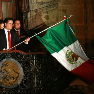 Luego de enlistar los héroes de la fecha, acompañado de su esposa, Lorena Jasibe Arriaga, y los presidentes del Legislativo y Judicial, Enrique Velázquez y Luis Carlos Vega Pámanes respectivamente, el gobernador tocó la campana, agitó la bandera y pronunció "¡Viva Jalisco! ¡Viva México!".