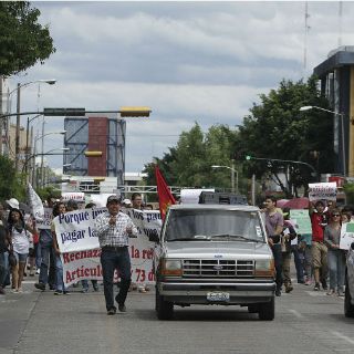 Y en apoyo a los maestros desalojados por la fuerza en el Zócalo de la Ciudad de México, ayer sobre Avenida Alcalde marcharon entre 150 y 200 integrantes del Movimiento Magisterial.