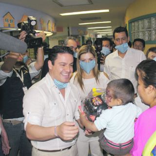 GUADALAJARA, JALISCO (01/MAY/2012).- En el marco de la celebración del Día del Niño, el candidato a la gubernatura por el Partido Revolucionario Institucional (PRI), Aristóteles Sandoval, visitó el pabellón de cuidados para niños con cáncer del Nuevo Hospital Civil, donde entregó cinco sillas de ruedas, andaderas y juguetes. Ahí, prometió invertir en más infraestructura para “niños vulnerables (con enfermedades como el cáncer)” y que tendrá una política transversal para atender a este sector. Sin embargo, sólo precisó unas cuantas propuestas.