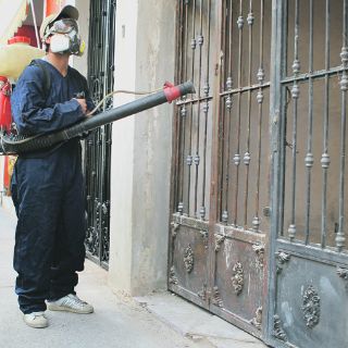 Él es Manuel Torres, un trabajador de la Secretaría de Salud Jalisco (SSJ) que en punto de las 18:00 horas se estacionó en los cruces de la Avenida Belisario Domínguez al cruce con el Periférico para fumigar —nebulizar— contra el dengue las fachadas y los árboles de unos 425 domicilios de la zona. La actividad le llevará unos 20 minutos; sin embargo, es precavido, pues a pesar de su cara de maldito no se aleja de la portezuela de la camioneta blanca mientras varios hombres de ropas largas que deambulan por las cercanías lo miran con amenazante curiosidad.