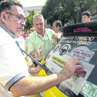 GUADALAJARA, JALISCO (21/NOV/2013).- “Mejor toma un taxi”, es la recomendación que resalta en letras negras y fondo amarillo en el medallón colocado en los primeros autos de alquiler que participarán en el programa de