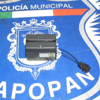 ZAPOPAN, JALISCO (06/SEP/2012).- Un hombre que se desempeñaba como cajero de un restaurante fue detenido por elementos de la Policía Municipal de Zapopan debido a que le encontraron un lector de tarjetas bancarias, para clonarlas.