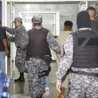 En la base central de la SSPE, fueron presentados los hombres que fueron detenidos a las 03:45 horas de este viernes, en el cruce de Jesús Carranza y Cuauhtémoc, en la Colonia La Capilla del citado municipio.