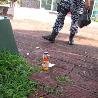 De acuerdo a versiones, la primera bomba tenía su mecha pero el sujeto olvidó encenderla antes de arrojarla, por lo que decidió terminar la tarea en el lugar del ataque, intento que se vio frustrado no sin antes oponer resistencia: "Traía un palo de aproximadamente un metro de largo, como el larguero de una cama con el cual también intentó agredirnos". Así, tras lanzar algunos garrotazos se detuvo en el punto y se le aseguró otra botella con unos 355 mililitros de gasolina.