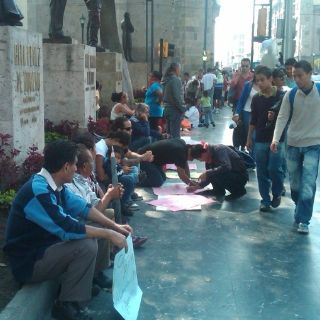 GUADALAJARA, JALISCO (16/NOV/2012).- Los artesanos que han venido manifestándose desde semanas atrás, y que ayer se postraron a las afueras del Palacio Municipal de Guadalajara, se encontraban hoy sentados en la Rotonda de los Jaliscienses Ilustres, e intermitentemente toman sus pancartas y las mostraban a los automovilistas a mitad de la calle, en los altos de la Avenida 16 de Septiembre, sin embargo, no afectaban la circulación.