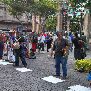 En estos momentos están apostados a un costado inmediato del Palacio Municipal de Guadalajara, y nuevamente están vendiendo sus productos, a la vista de los inspectores municipales, y a pesar de que esto está prohibido por la reglamentación municipal.