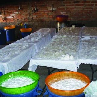 En el lugar fueron asegurados cuatro mil 175 kilos aproximadamente de sustancias químicas, óxido de sodio, sosa cáustica y cal, además de tres camionetas, todas con placas de Jalisco, cuatro secadoras portátiles y una caldera metálica.